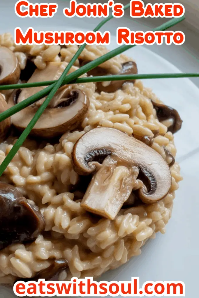 Make Chef John’s famous Baked Mushroom Risotto! This easy method delivers incredibly creamy, flavorful risotto with less stirring, featuring mushrooms, Parmesan, and fresh chives.